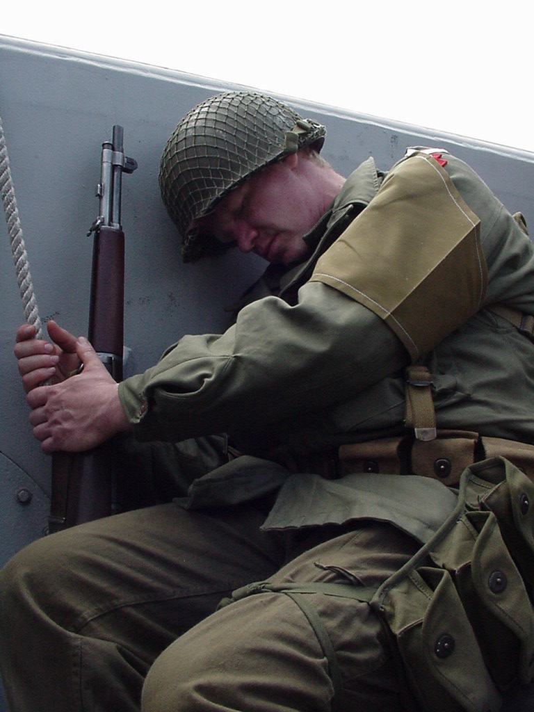 Ironically it was a flying object that killed my uncle on D-Day as well. The pyro burst moments before seem to set the stage for my own demise. Just prior to my uncle’s Amin’s final moments, a huge explosion sent a jeep high into the air. Returning to earth, the vehicle landed directly upon my Great Uncle killing him instantly. Amin Isbir is buried in France overlooking the sands of Omaha Beach where he died so others can be free. In 2006, my cousin Jim Ameen is making the trip from Florida to attend this years’ event. Jim and I met ironically at a WWII event. He recognized Amin’s brother John whose photo I had in a family album. This amazing story of our Uncle Amin’s death was the catalyst of each of us becoming a WWII re-enactor. Jim and I met in our early childhood, but had not seen each other for well over 30 years. We were brought together again due our mutual interest in honoring our family by a chance meeting in Miami Beach. But that’s another story!